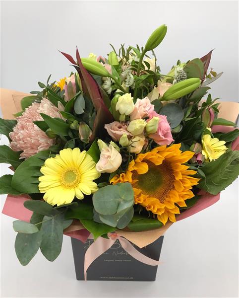Please note that due to the seasonal availability of flowers it may be necessary to vary individual stems from those shown. Our skilled florists may substitute flowers for one similar in style, quality and value. Where our designs include a sundry item like a vase or basket it may not always be possible to include the exact item as displayed. If such an occasion arises we will make every effort to replace the item with a suitable alternative.