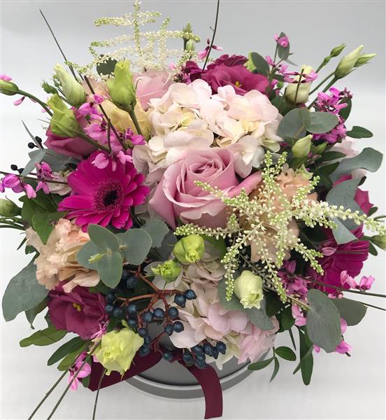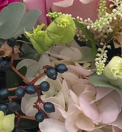 This one is so fresh and vibrant, a beautiful mix of soft and bold tones! A gorgeous gathering of soft pink blooms, dusky berries and bright bursts, lovingly arranged with a touch of wild charm.