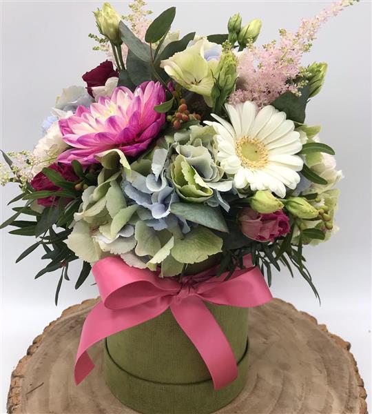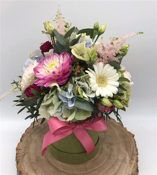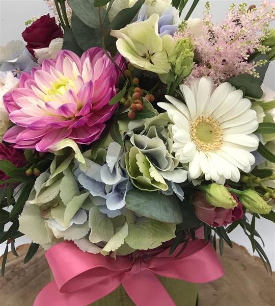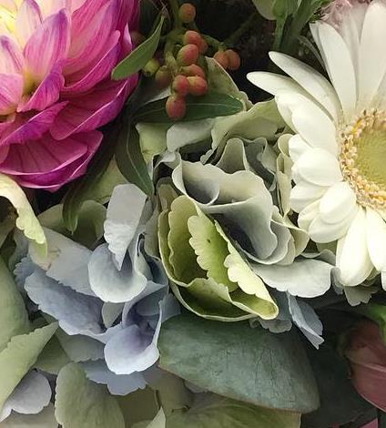 This arrangement feels like a soft breeze through a summer meadow, layered pastels, delicate textures, and just the right pop of raspberry pink. A fresh mix of soft hydrangeas, cheerful blooms and delicate flowers, full of charm and gentle colour.