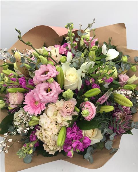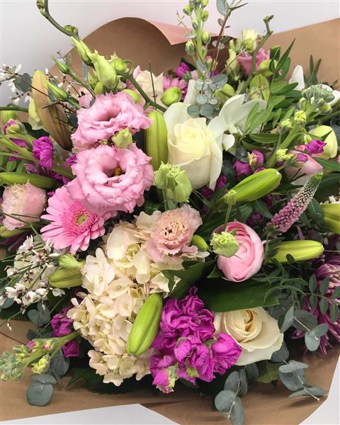 So gorgeous! A fresh and lively mix of pinks, purples and creams, so full of texture and movement. A delightful burst of pinks, purples and cream blooms, hand-prepared for a truly uplifting gift.
