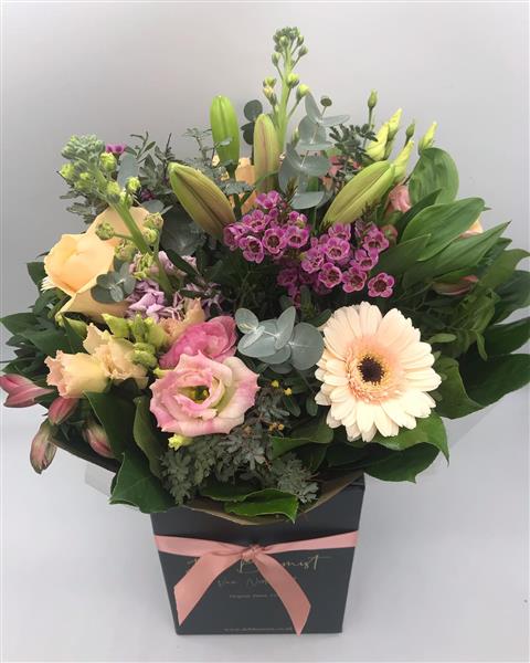 Please note that due to the seasonal availability of flowers it may be necessary to vary individual stems from those shown. Our skilled florists may substitute flowers for one similar in style, quality and value. Where our designs include a sundry item like a vase or basket it may not always be possible to include the exact item as displayed. If such an occasion arises we will make every effort to replace the item with a suitable alternative.