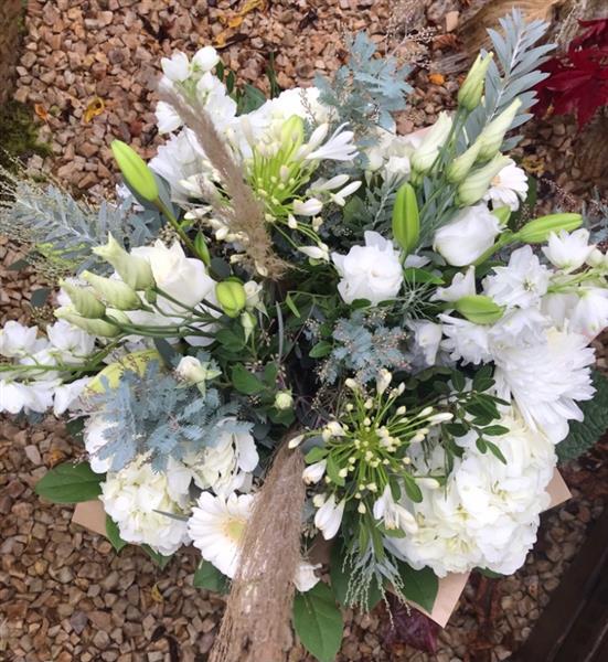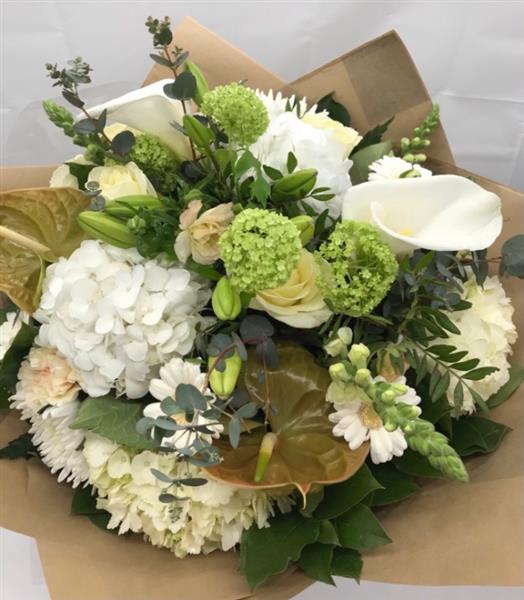 Please Note: The flowers we use vary depending on the season and availability. Your bouquet will be undoubtedly gorgeous but will vary from the picture.