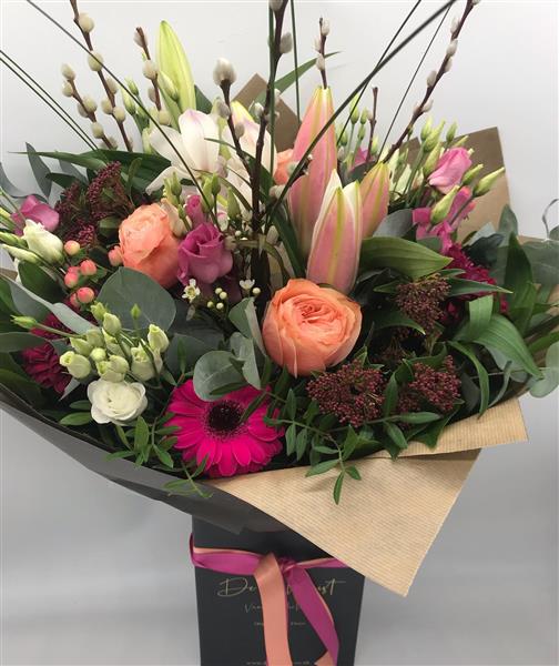 Please note that due to the seasonal availability of flowers it may be necessary to vary individual stems from those shown. Our skilled florists may substitute flowers for one similar in style, quality and value. Where our designs include a sundry item like a vase or basket it may not always be possible to include the exact item as displayed. If such an occasion arises we will make every effort to replace the item with a suitable alternative.