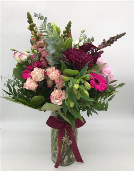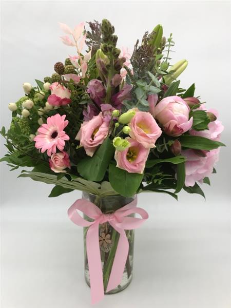 A fabulous bouquet of flowers arranged in one of our clear glass vases.