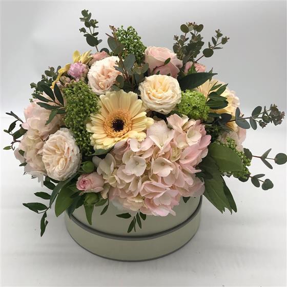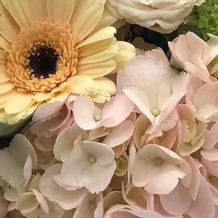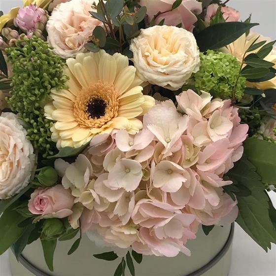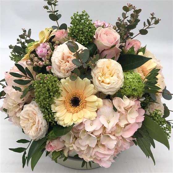 This one's so soft and dreamy like a beautiful vintage garden, full of creamy tones and pretty blush touches. A soft medley of creamy blooms, blush pinks and gentle textures for a timeless, elegant look.