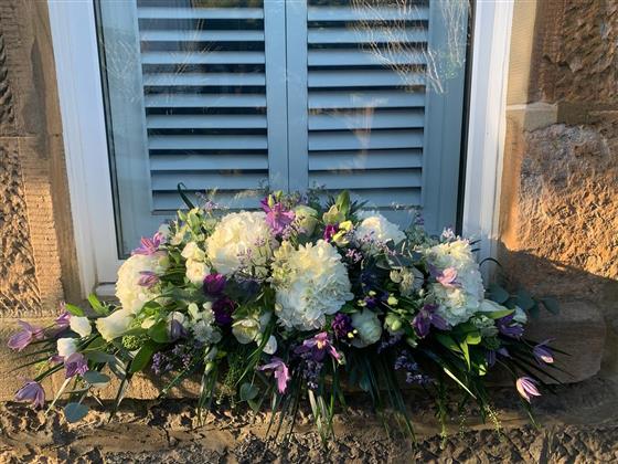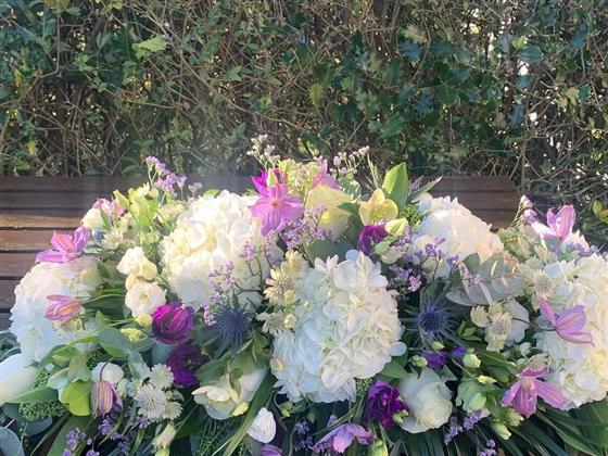 Purples, Whites & Greens Casket Spray